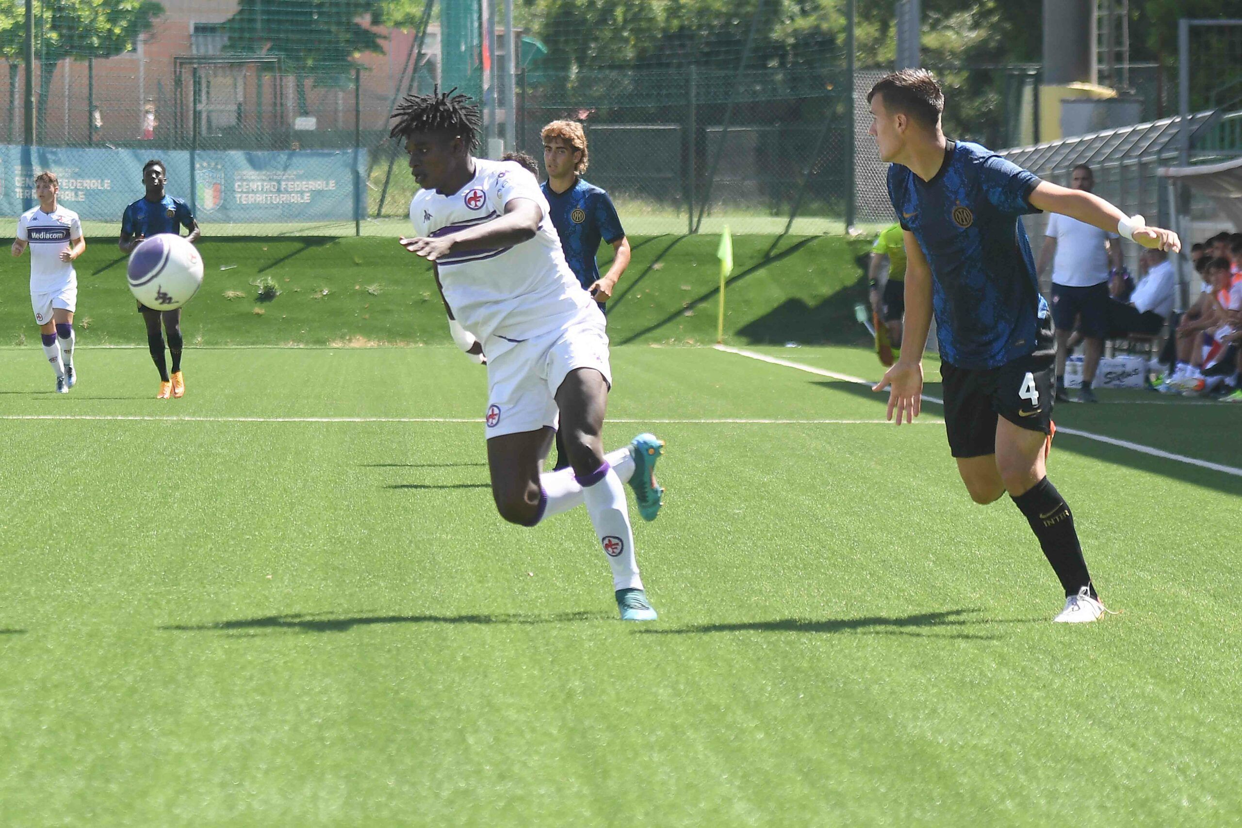 Firenze- Non c’è stata proprio partita al Bozzi tra Fiorentina ed Inter Under 18 nella gara dei play off andata in scena questa mattina. I ragazzi guidati da mister Papalato hanno vinto con un perentorio 3-0, giocando gran parte della gara in inferiorità numerica, un risultato ottenuto grazie alla strepitosa tripletta di Sene e con un grande spirito di squadra. I viola approdano così alla semifinale scudetto dove affronteranno, il prossimo 16 giungo, il Bologna al Riviera Delle Palme (ore 17.00).E dunque è stato il classico “Un-due-tre…tamburissimo”..una “Super Fiorentina” Under 18 asfalta l’Inter senza se e senza ma, grazie alla SUPER TRIPLETTONA di uno scatenato Sene 10 al 28°; poi tutto era rimesso “in bazzica”dall’espulsione di Messini al 33°; ma il raddoppio sempre a firma Sene arrivava nella ripresa al 59° poi la tripletta col “fiocco e contro fiocco” al 77° : Fiorentina straripante che va alla”Final/Four .GRRRRRANDISSIMIIIIII !!!