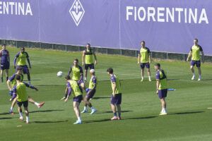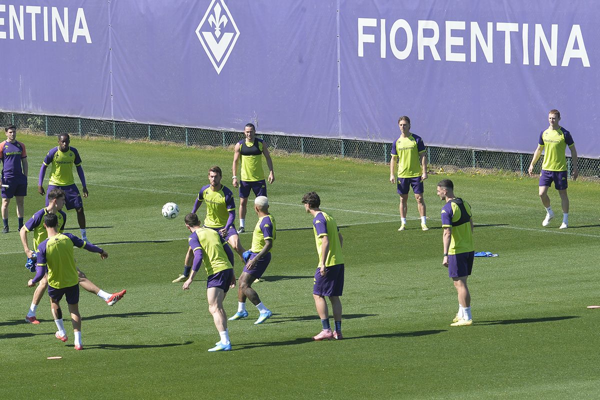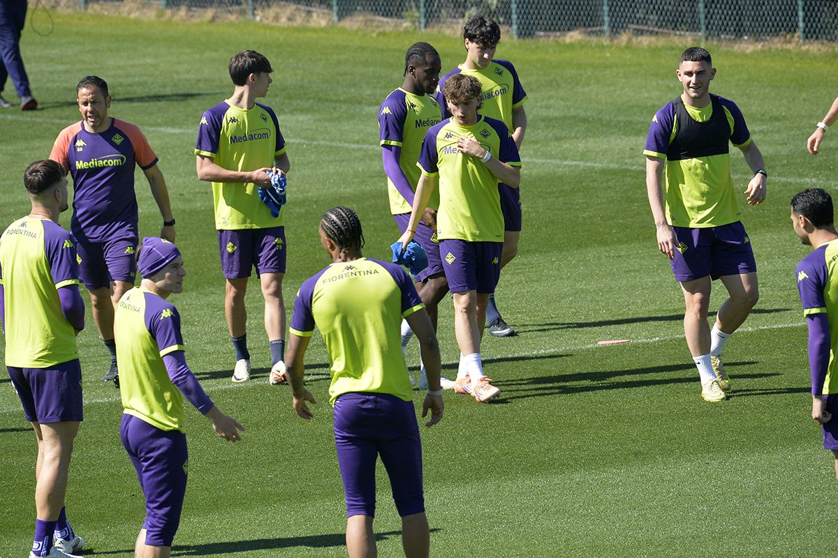 Allenamento al Viola Park sotto un sole caldo per la Fiorentina prima della partenza per Londra, dove domani sera sfiderà il Crystal Palace.