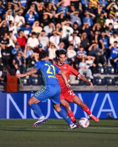55′ Kouame, in mezzo, libera la difesa empolese.