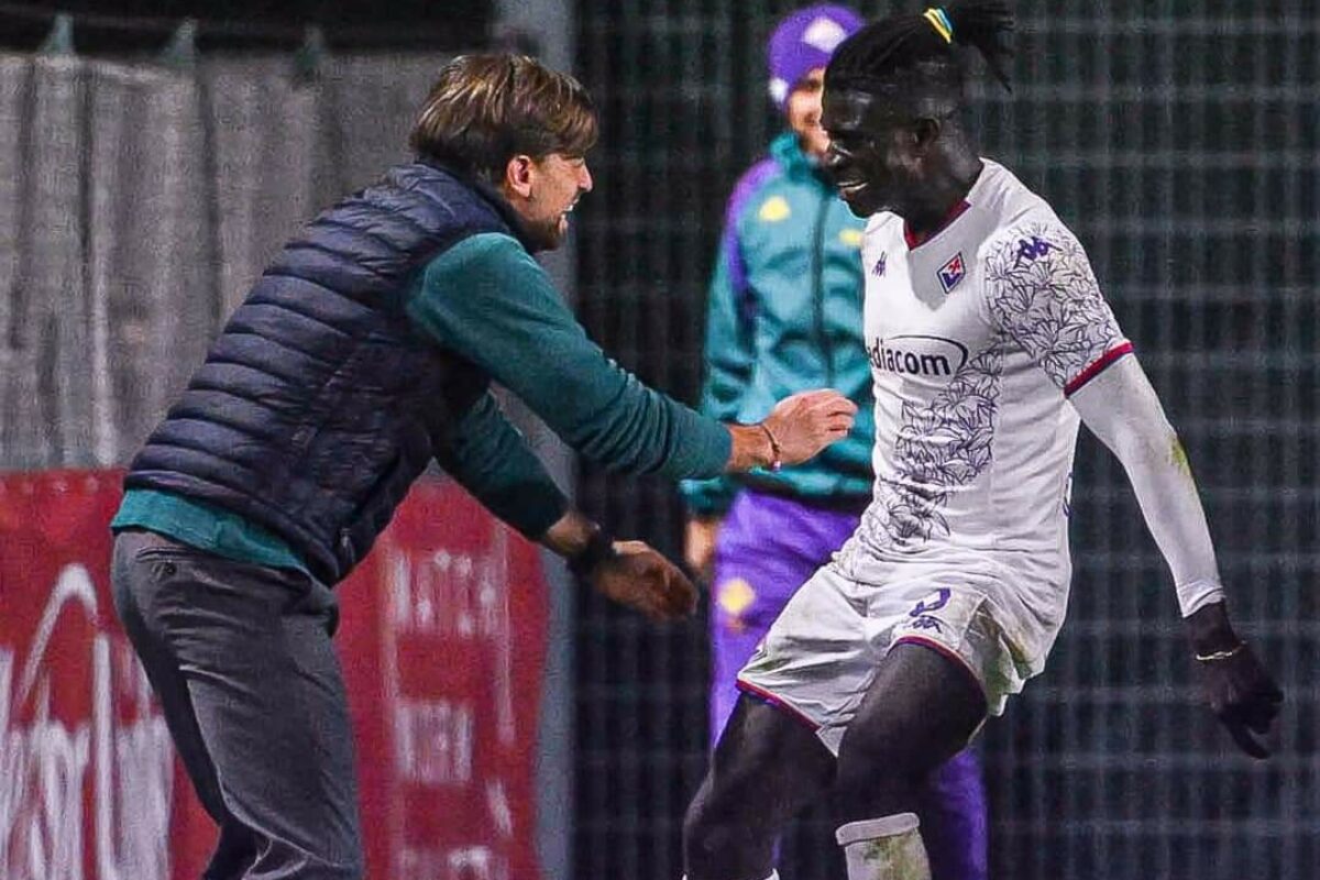 3′ ⚽️ Gooool Fiorentina, fuga a destra di Egharevba, pallone a Seck, tiro potente proprio dell’ ultimo arrivato che all’esordio in viola timbra subito battendo Bagnolini, 1-0 !!