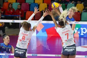 IL BISONTE FIRENZE: Acciarri 14, Ribechi, Ishikawa 8, Magni (L2) ne, Leonardi (L1), Alsmeier 19, Cesè Montalvo ne, Kipp 23, Lazic 8, Mazzaro 7, Graziani ne, Agrifoglio, Kraiduba ne. All. Parisi.