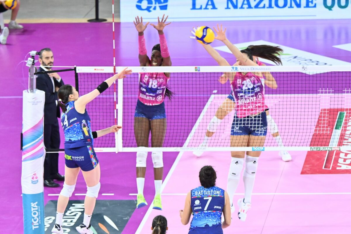 IL BISONTE FIRENZE: Acciarri ne, Ribechi, Ishikawa 17, Leonardi (L), Battistoni 4, Alsmeier 27, Lazic 4, Mazzaro 8, Graziani, Kraiduba 11, Stivrins 10. All. Parisi.