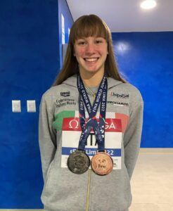 Giulia Vetrano è di bronzo nei 200 stile libero e firma una favolosa tripletta, dopo quelli conquistati nei 400 stile libero e nei 400 misti. La sedicenne sabauda – tesserata per CN Nichelino, allenata da Marcello Onadi, agli Eurojrs di Otopeni argento nei 200 e nei 400 stile, nei 400 mix e con la 4×200 sl – nuota in 1’59”54 che vale la seconda prestazione personale di sempre, dietro all’1’59”33 siglato al Sette Colli di Roma nel 2021.