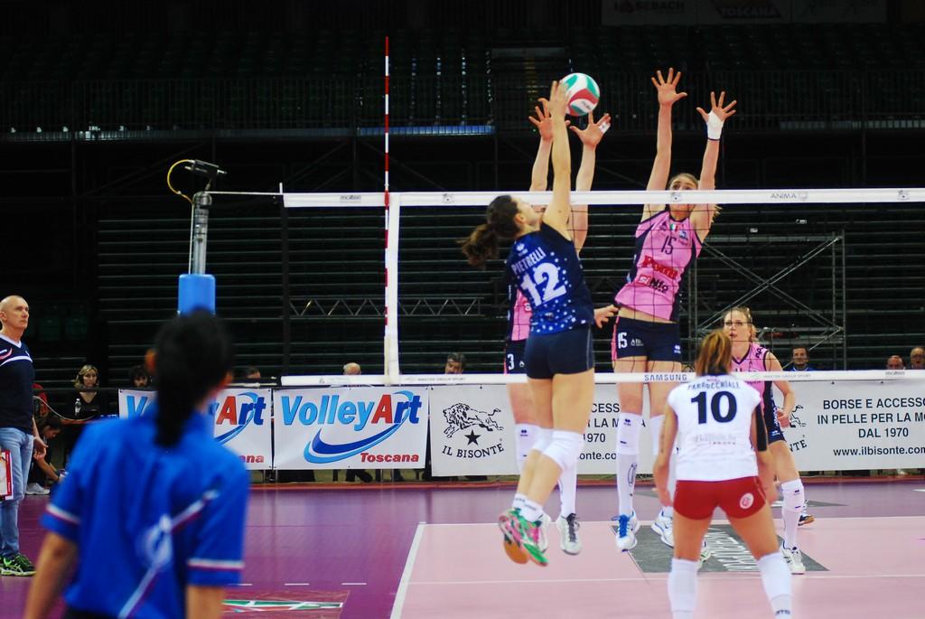 Nel terzo torna Turlea da opposto, con Vanzurova in banda insieme a Usic, ma ancora una volta la Pomì non si fa passare a muro e approfitta di tutti gli errori di Firenze, salendo 0-5. Sul 2-7 rientra Pietrelli per Vanzurova, una reazione d’orgoglio riporta le bisontine sul 6-7, e poi un fallo di seconda linea di Kozuch vale l’8-8 e il time out Barbolini: le ospiti si rimettono in sesto con un paio di muri (9-12), Turlea entra in partita e riesce a riportare Il Bisonte in parità (15-15), ma basta un attimo e uno splendido ace di Tirozzi significa il nuovo + 3 (16-19). La squadra di Francesca Vannini non vuole mollare, ed è Usic a trovare la nuova parità a 21: Barbolini inserisce Bacchi per Piccinini, il possibile 23-22 firmato Pietrelli diventa 22-23 quando gli arbitri valutano in campo il muro su di lei della Pomì, e dopo l’ace di Gibbemeyer (22-24) Turlea ha la forza di annullare il primo match point (23-24), prima del sigillo definitivo di Stevanovic (23-25)